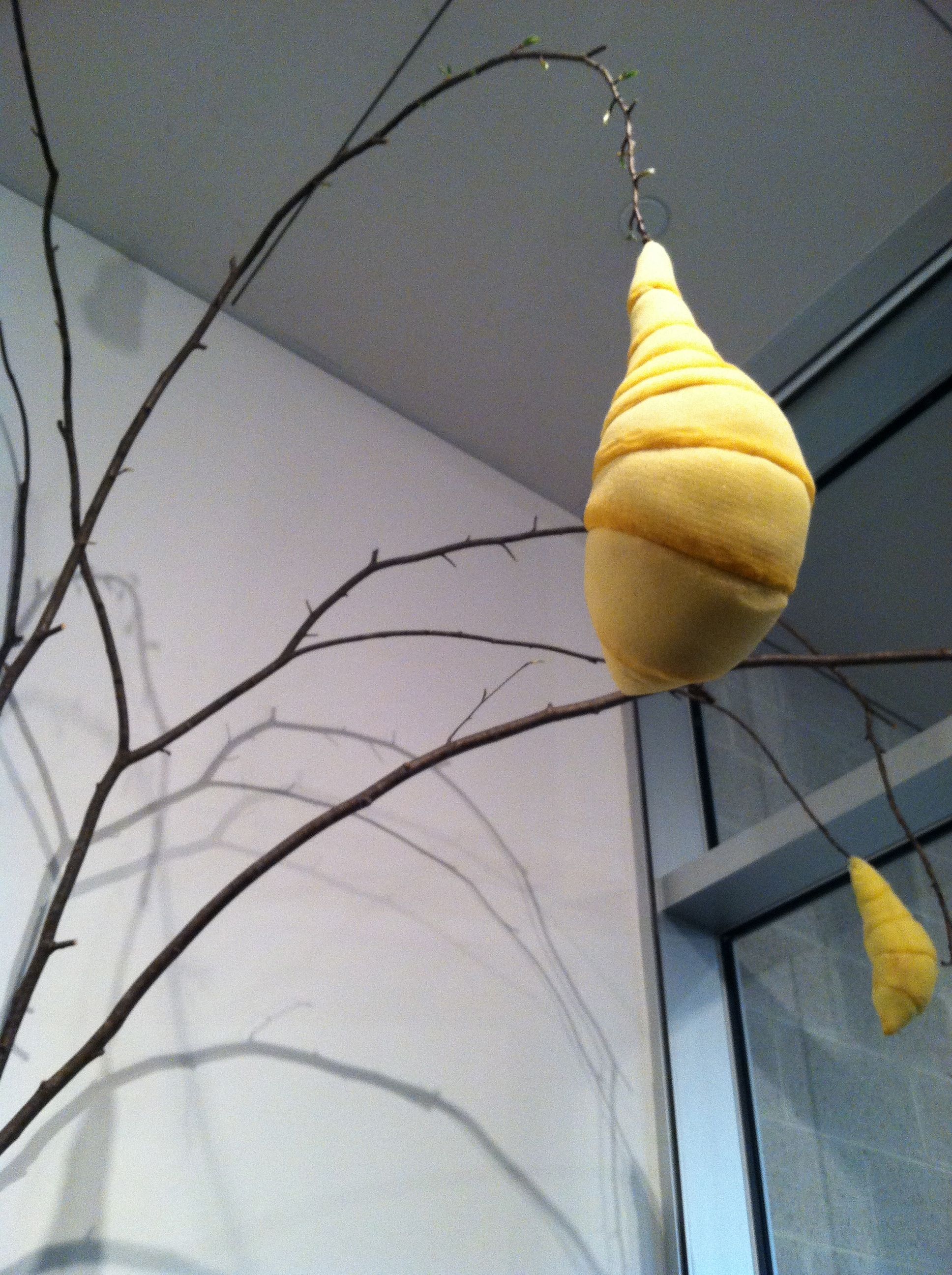 Metal, wood, onion skins - 28” x 7”